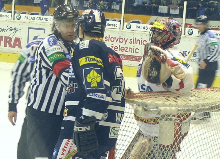 Radim Vrbata si cosi vysvětluje s rozhodčím Martinem Smetákem