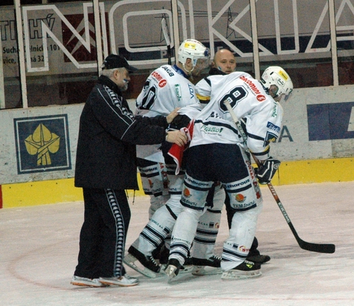 A za pomoci spoluhráčů je odváděn do kabin...